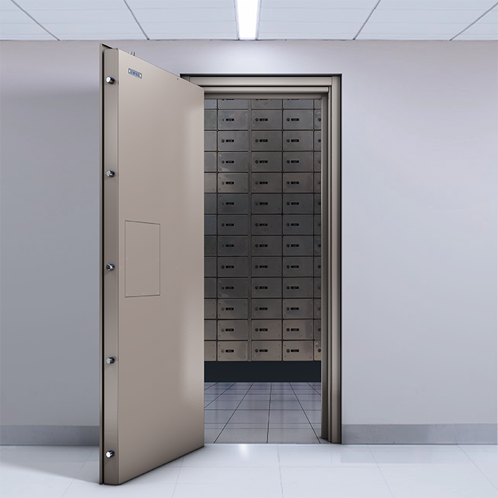 Puertas de uso en recinto de resguardo de valores, pensada para uso interior y complementada con herrajes y accesorios especiales de alta seguridad, según la necesidad del proyecto.